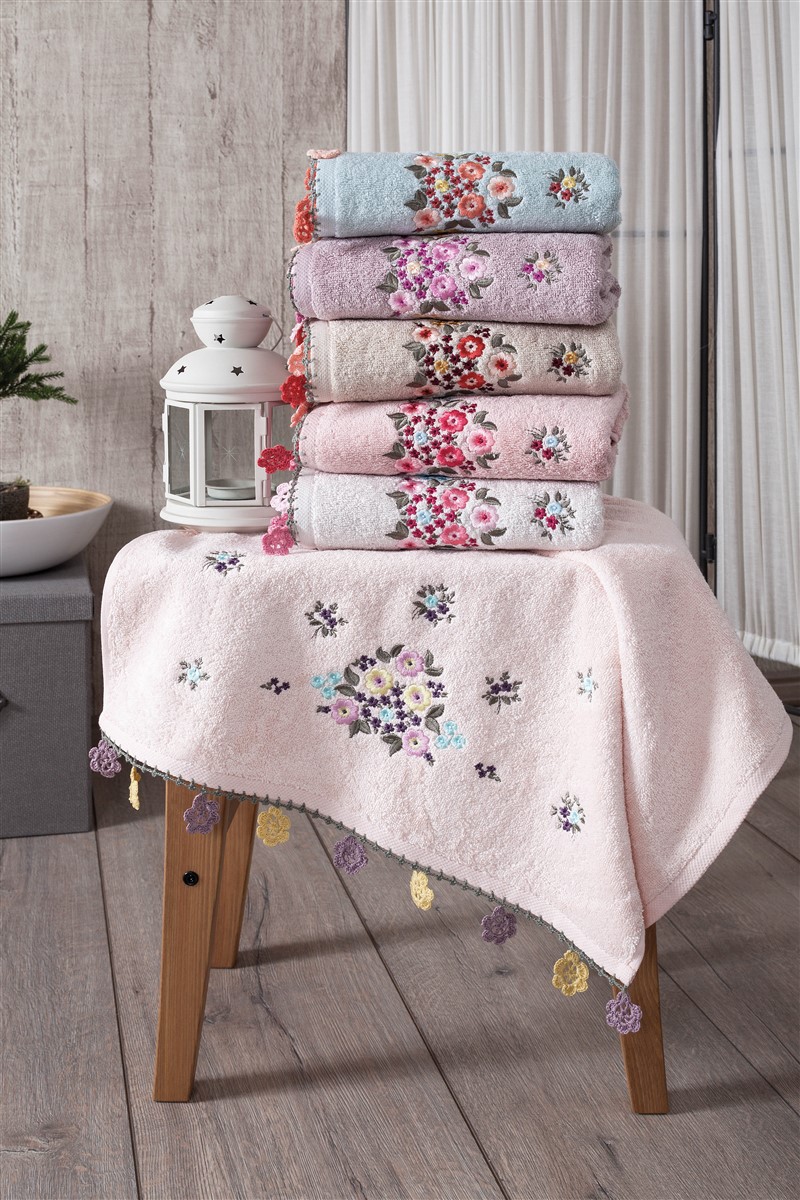 #goncahavlu00045Gonca El İşi Örme Nakışlı Havlu 50x90