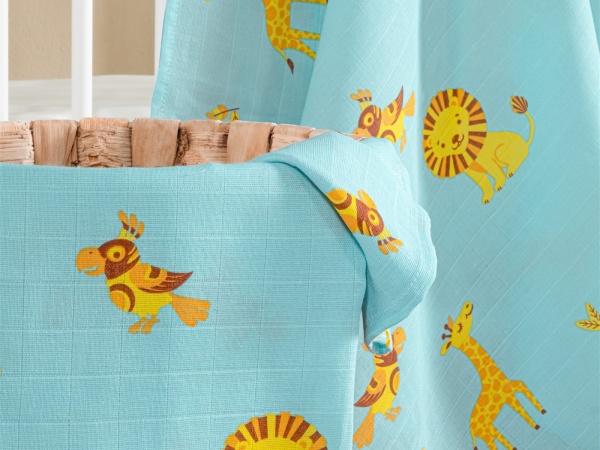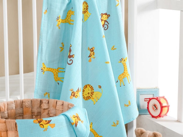 LUNANİNO 2'li Müslin Tek Kat Bebek Örtüsü-Battaniyesi Çok Amaçlı Örtü 100x100 (Aslan)