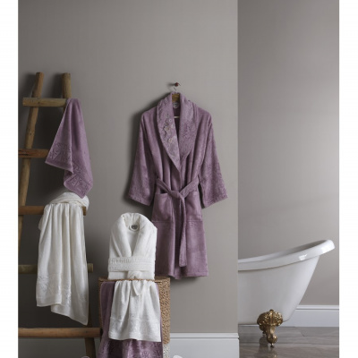 Gonca Bambu 6 Parça Nakışlı Bornoz Seti